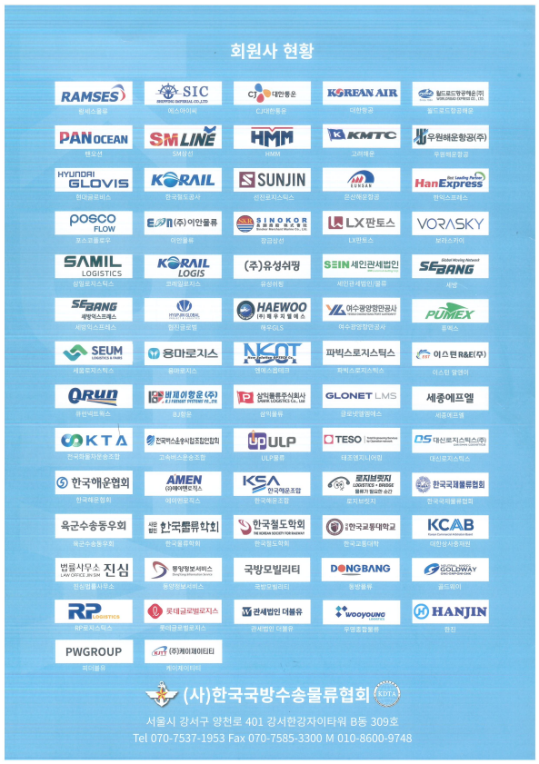 또한 당사의 황해영 대표님께서 한국국방수송물류협회의 부회장으로서, 국방수송물류에 앞장서고 계십니다.